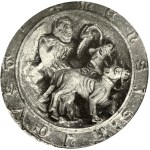 Los precedentes de estas representaciones son remotos como se há dicho, aunque empiecen a encontrarse repetidas en occidente con gran insistencia en la zona dominada por el gran emperador y sus sucesores, zona en que entonces podrían estudiar los artistas con detalle multitud de obras romanas, galo-romanas y paleocristianas hoy perdidas o mal conservadas.