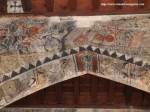 Agosto: la trilla, pero no con mayales, sino con trillo de madera, sobre el que descansa el labrador, tirado por un par de bueyes, lo cual es muy significativo desde el punto de vista etnológico.