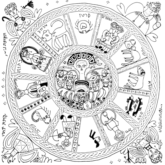 Gérald Finfielsztejn: O Zodíaco é uma representação do curso do ano, comprovada pelo mosaico de Sepphoris. Aos sinais, é adicionado “o período do mês” em hebraico e grego. Diferentes estrelas são sistematicamente associadas a cada um dos Signos do Zodíaco. Também se insiste em retratar objetos das principais atividades agrícolas de cada época.